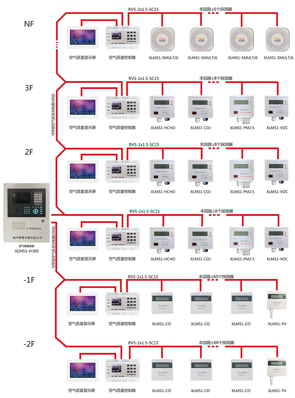 XLMS1-H300系列空氣質量監(jiān)控管理系統(tǒng)示意圖: