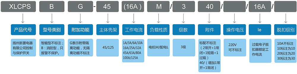 · XLCPS系列控制與保護(hù)開關(guān)主體殼架分為: 45A、125A。